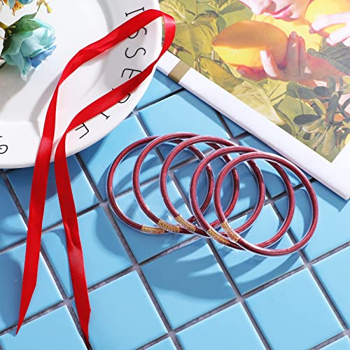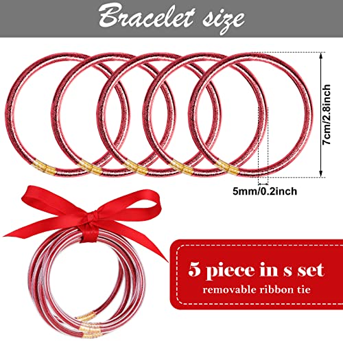 • Special Design: Retro and up-to-date glitter jelly bracelets are lightweight and waterproof. A set of 5 bracelets tied together by ribbons in bows. Size of inside diameter is 2.6'', circumference is 8''. This jelly bangles fit the wrist of remarkably women