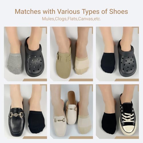 • Invisible&No-Show: These half socks are designed to be completely invisible under shoes like clogs, mules, loafers, slippers, flats, slides, slingback shoes. love all-day comfort without the visible sock lines, making them impeccable for a no-show look
