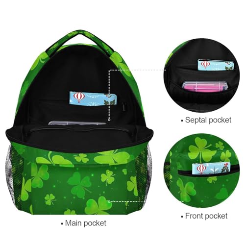 Kids School Backpack, Shamrocks Clovers Green Lightweight Kids Travel Bag for Boys Girls Back to School Supplies,16 in 7