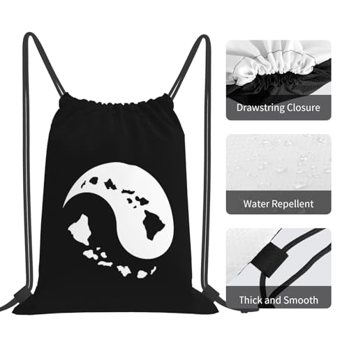 More information about Yin Yang Hawaiian Island Map Drawstring Bags, Lightweight Gym Sack with Adjustable Cord, Water-Resistant Sports Backpack for Men Women, Travel, Yoga, College (Black)
