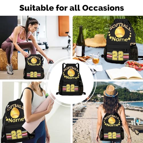 zaaprintblanket Softball Black Custom Sports Gym String Backpack Drawstring Sackpack Backpack for Women Men