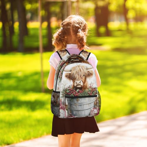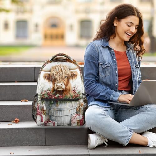 Western Cow Backpack for Women Men Highland Cow Shoulder Computer Laptop Adults Backpack Sports Hiking Gym Workout Travel Casual Daypack