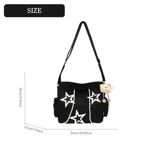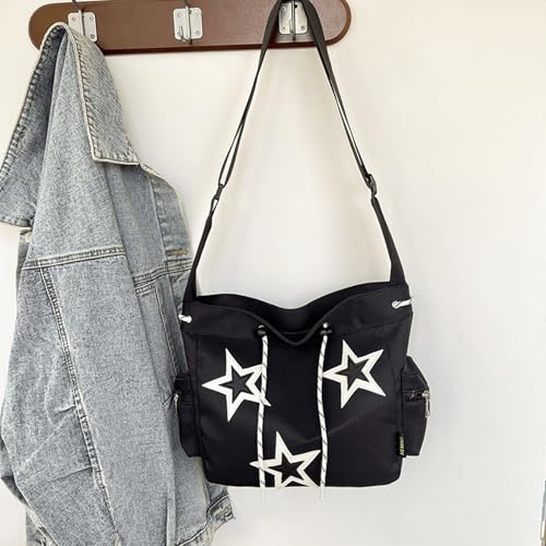 sizzling ! Vintage Star Messenger Bag, Cute Aesthetic Y2K Tote Bag for Women Men