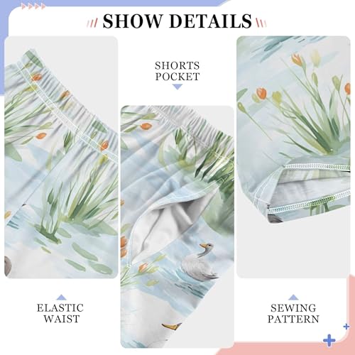 Woodland Duck Long Pajama Pants Elastic Waist PJ Bottoms with Pockets S A111660