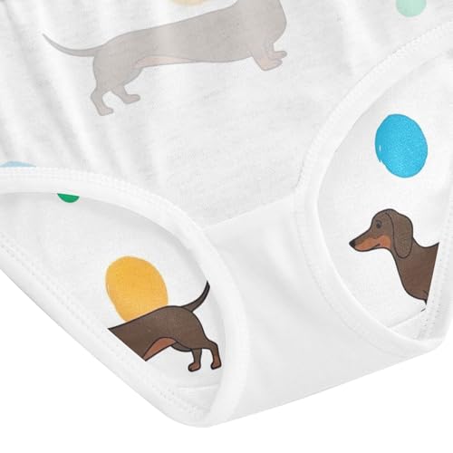 Brown Dachshund Dogs Spots White Panties for Girl Toddlers Underwear Floral Cotton Fun Print Briefs Kids Undies 2t