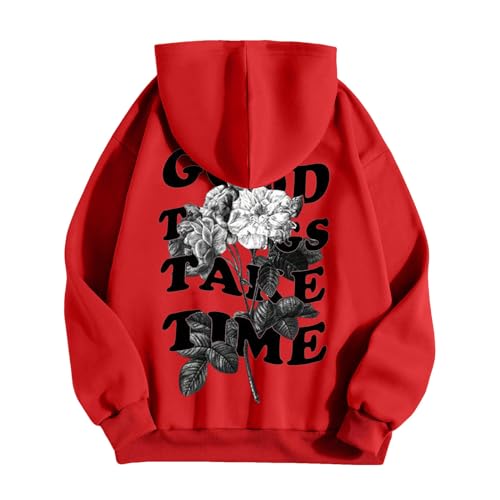 sizzling ! Good Things Take Time & Rose Shape Graphic Hoodie for Men Long Sleeve Y2K Hooded Pullover Tops Oversized Comfort Hoodies