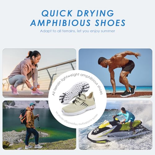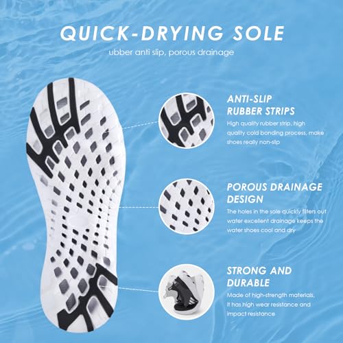 Sole material: Ethylene Vinyl AcetateOuter material: MeshClosure type: Lace-UpMaterial: water shoes for women men have adopted the mesh fabric and combined it with elastic EVA soles, making the whole barefoot shoes extremely lightweight. Wearing swim shoes won't add any burden, and our beach shoes are suitable for ordinary walks at the same timeSoles: Our mesh hiking shoes with EVA soles are equipped with extra-large drainage holes, which can quickly drain the excess water out of the pool shoes, allowing the shoes to dry in the sun and ventilation. Meanwhile, a dense mesh surface is added to the soles to prevent sand and small stones from getting in. The special patterns on the soles also provide a lot of anti-slip function, making our river shoes highly suitable for mountain climbing and hikingConvenient: Elastic neckline for easy on and off. The locking mechanism of the beach shoes men allows you to freely adjust the tightness of shoelaces. Lightweight and flexible aqua shoes will bring you a relaxed trip, You can be easy to carry out your water shoes to water sportsOccasions: Adult water shoes for kayaking, canoeing, hiking, jogging, diving, cycling, rock climbing, surfing, kayaking, swimming, fishing, yoga, beach,pool, water park, water aerobics, rainy day, cruise essentials, camping accessoriesSize choice: We offer a variety of sizes for selection(Szie 6 7 8 9 10 11 etc). Since our sock shoes are elastic, we suggest that if you're not sure about the size, you can choose a half size smaller. ideal for everyday use. top-grade materials and excellent craftsmanship ensure long-lasting durability.