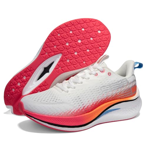 Sole material: RubberOuter material: MeshClosure type: Lace-UpWater resistance level: Not Water ResistantLightweight and breathable upper: This women's running shoes is made of jacquard mesh material, which fits the foot shape lightly and improves breathability, keeping your feet dry even after long-term exercise.Rebound and shock-absorbing sole: This women's walking shoe has the highlight of softness and comfort, ETPU supercritical foaming midsole, shock-absorbing and rebound, and significant flexibility.Rubber outsole, wear-resistant and non-slip: This women's athletic shoes can provide reliable grip in a variety of environments. Whether you are running on the track, playing tennis or walking on the road, it can ensure the safety of your steps.Built-in carbon plate for support and stability: This women's workout shoes uses a half-palm carbon plate, a soft shock-absorbing popcorn sole and an embedded carbon plate, which takes into account comfort and balance and provides better foot support.Casual running shoes designed for women: Conform to the characteristics of women's feet, lightweight design, fashionable color matching, whether it is daily training, casual walking or long-term standing work, it can provide a plush and non-tiring experience. Perfect for everyday use. finest materials and excellent craftsmanship ensure long-lasting durability.