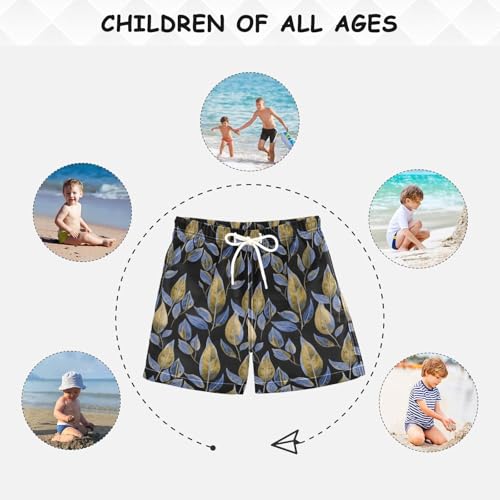 DOMIKING Leaves Plant Black Toddler Boys' Swim Trunks Mesh Lining Swim Shorts for Kid Boy Toddler Adjustable Waist 1