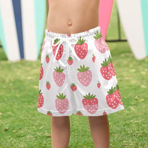 Pigsaly Boys' Swim Board Shorts Green Leaves Strawberry Boy's Swim Trunks Kids Swimwear S 2