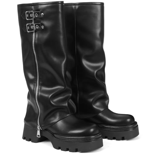 At leiahsmark.dreamhosters.com, we believe in providing our customers with only the best products. This Women's Knee High Fold Over Boots Chunky Platform Lug Sole Comfortable Leather Round Toe Goth Moto Combat Dress Boots for Women is designed with attention to detail and high quality craftsmanship that you can see and feel. Whether you're looking for functionality, style, or both, this product delivers exceptional value.