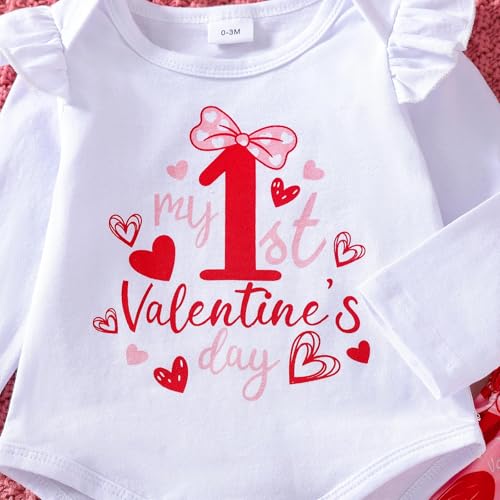 Newborn Infant Baby Girl My First Valentines Day Outfit long Sleeve Onesie Romper cherish Heart Print Pants And Headband