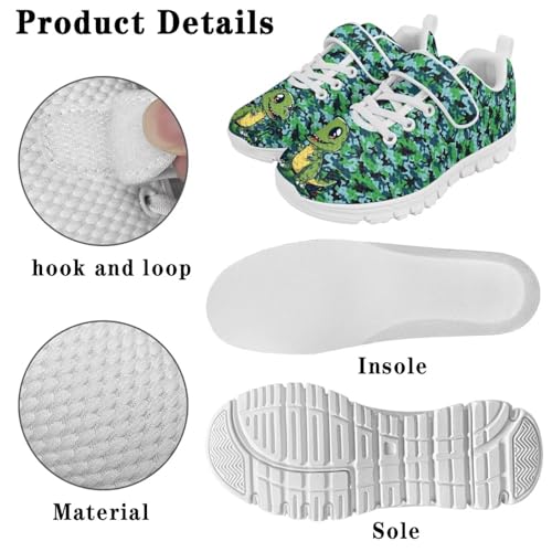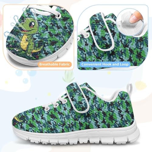 Boys Sneakers Kids Running Shoes Girls Mesh Fitness Shoe Indoor Training Sneaker Lightweight Outdoor Sports Athletic Tennis Shoes for Little Kid White Sole Dinosaur Camouflage Pattern