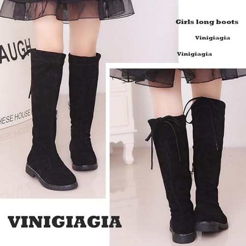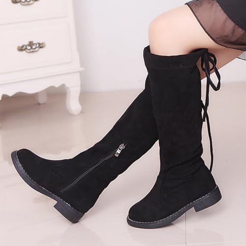 Girls' Youth Side Zipper Back Tie String Suede Knee High Long Boots Fur-Lined Over The Knee Winter Booties 6
