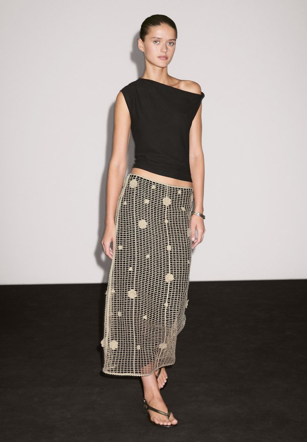WITH FLORAL EMBROIDERY - A-line skirt - beige 6