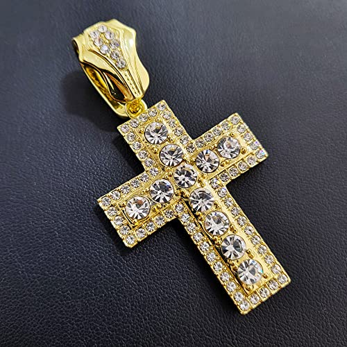 More information about Full Iced Gold Plated CZ Holy Cross Bling Pendant & 10mm 18" 20" 24" 30" Cuban Chain Hip Hop Rapper Jewelry Necklace