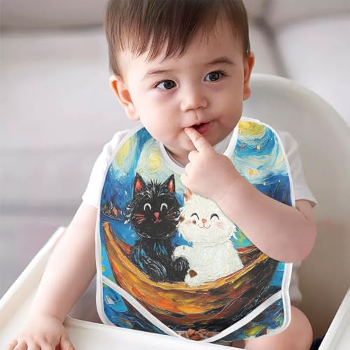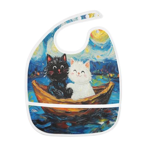 MCHIVER Cats Boat Blue Baby Bibs for tag1 Waterproof Feeding Bib Apron with Food Cather Adjustable Cotton Food Eating Bib 2 Pack