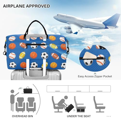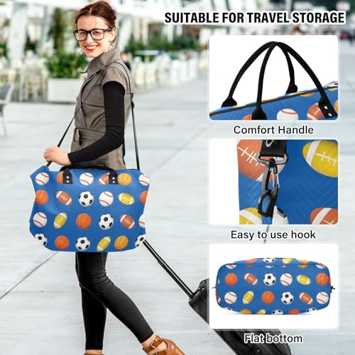 Travel Gym Bag, Deep Blue Balls Pattern Weekender Overnight Duffle for Women with Toiletry Bag Travel Swim