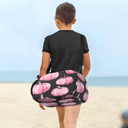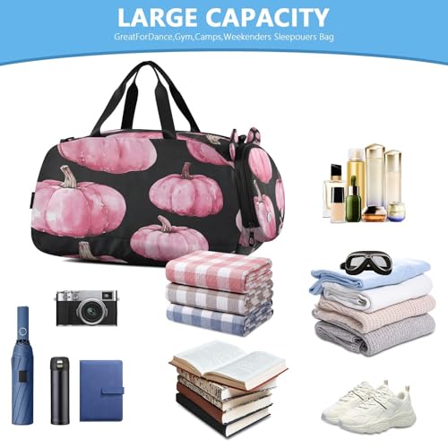 YETTASBIN Sport Travel Duffel Bag for Girls Boys, Pink Pumpkin Large Waterproof Weekender Overnight Bag, Detachable Shoulder Strap Gym Bag with Shoe Compartment & Wet Pocket