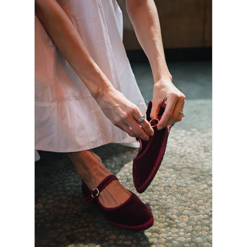 Velvet Mary Janes Women Red Ballet Flats Fall 2024 Y2k Shoes Burgundy Flat Shoes Suede Mary Jane Flats