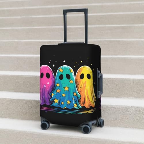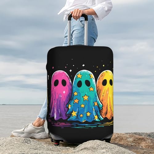 Three Colorful Ghosts Neon Elastic Travel Luggage Covers Dustproof Scratch-Resistant Suitcase Protector Fit 22-24 Inch