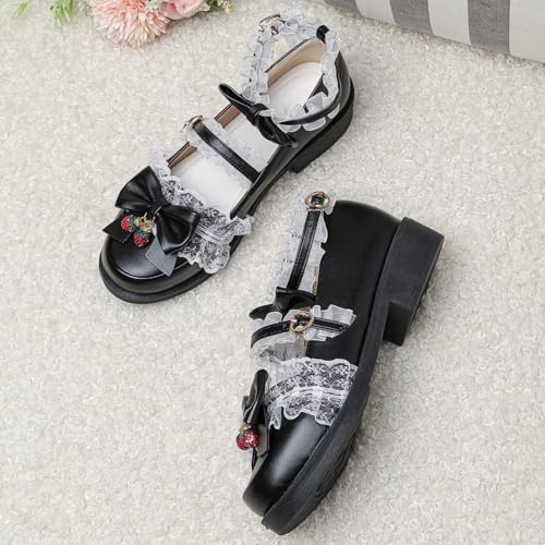 Women's Kawaii Ankle Strap Mary Jane Shoes, Gothic Platform Mary Janes, Cosplay Cute Goth Lolita Shoes with Bows 6