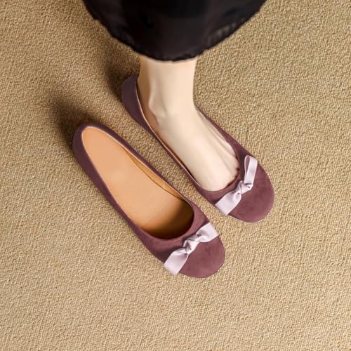 SHODENSE Women Round Toe Bow Flats Suede Slip on Ballet Shoes cushy Cute Dress Flat Shoes with Bow Two Tone Walking Drive Flats Street Party Wedding Dress Flats Retro 4-11 M US