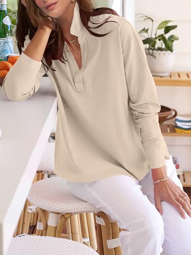 ANRABESS Women Long Sleeve Polo Shirts Casual V Neck Collared Boxy Fit Dressy Work Blouse Top Spring Outfits 5