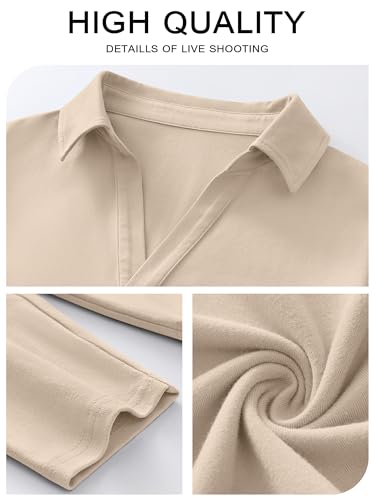 ANRABESS Women Long Sleeve Polo Shirts Casual V Neck Collared Boxy Fit Dressy Work Blouse Top Spring Outfits 2