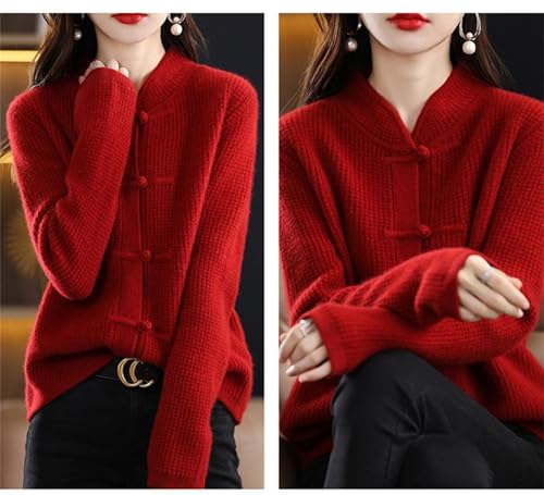 sizzling ! Women's Chinese Style Cardigan Knit Top Stand Collar Vintage Frog Button Long Sleeve Sweater Coat