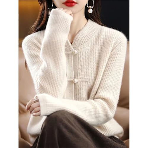 Women's Chinese Style Cardigan Knit Top Stand Collar Vintage Frog Button Long Sleeve Sweater Coat 7