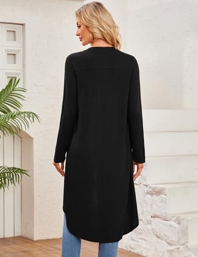 Bluetime Women Open Front Long Cardigan Lightweight Long Sleeve High Low Hem Maxi Duster with Pockets (S-3XL)