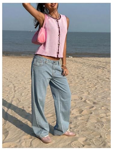 Fabric type: 100% AcrylicCare instructions: Machine WashOrigin: ImportedClosure type: ButtonMade with 100% Acrylic, womens sleeveless tank top is smooth and skin-friendlyFeatures: Women's knitted cropped sweater vest adopts sleeveless, round neck, button-down and contrast color trim design, which adds to the overall cuteness and fashionOccasion: Knit vest for women is perfect for many occasions, such as family outings, birthday parties, a day out at the park or just lounging at homePair button down cardigans for women with a shirt, suit, and leather shoes for a formal look, or a simple top, denim jacket or coat, casual pants, and sneakers for a casual look.Please refer to the Item Description below for Size Details.οΌThe item description is clothes size, not body size) Perfect for everyday use. top-grade materials and excellent craftsmanship ensure long-lasting durability.
