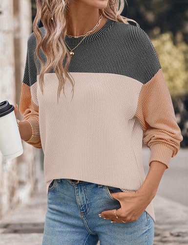 Ivicoer Womens Color Block Pullover Shirts Ribbed Long Sleeve Tops Fall Casual Loose Sweatshirts Fashion