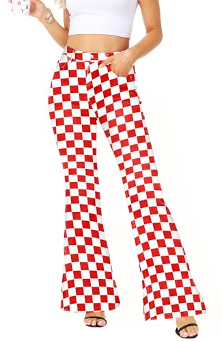sizzling ! Womens High Waisted Plaid Bell Bottom Jeans Stretch Checkered Flare Denim Pant