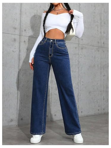 Floerns Women's Y2k Denim Pants High Waisted Straight Leg Stretchy Streetwear Jeans 4