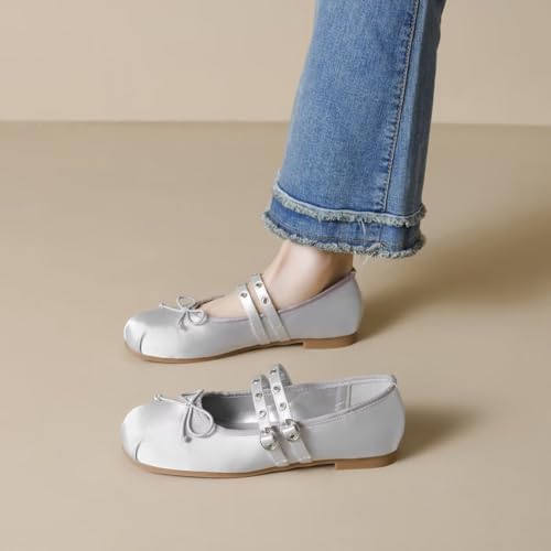LUXINYU Women Bowknot Mary Jane Satin Ballet Flats Square Toe Double Strap Casual Party Dress Shoes 7