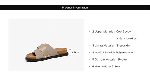 Women's Cow Suede Leather Slippers - Hook & Loop Solid Color Outdoor Flats 5