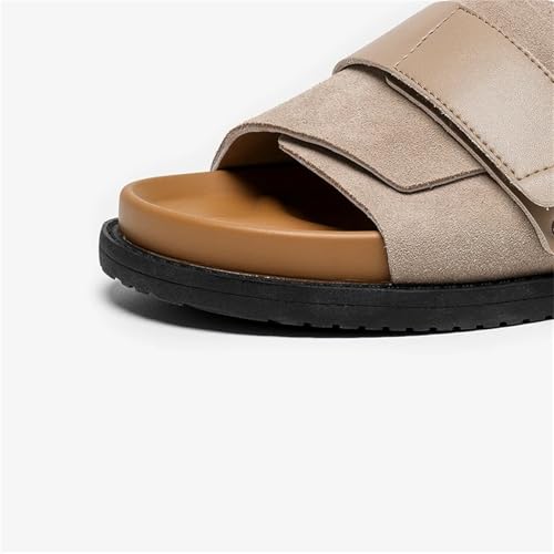 sizzling ! Women's Cow Suede Leather Slippers - Hook & Loop Solid Color Outdoor Flats
