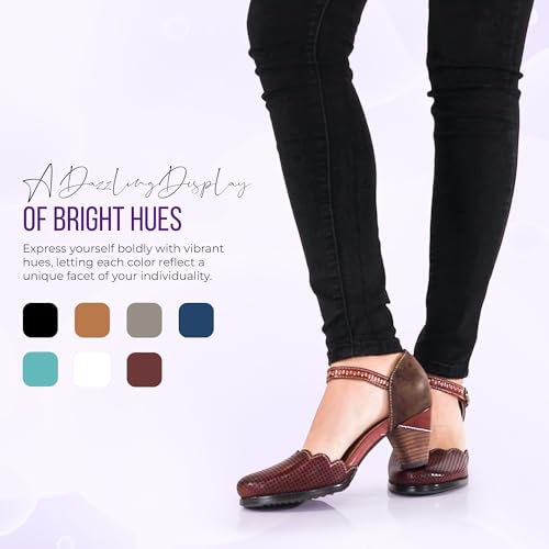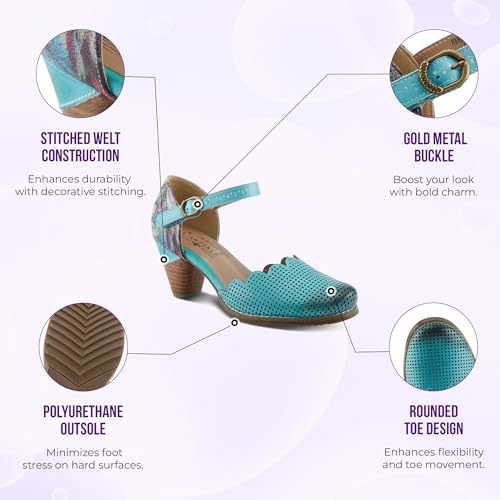 Fabric type: 100% LeatherOrigin: ImportedSole material: RubberOuter material: Leatherπ πππππ ππππππππ ππππ πππππππ ππππππ: Inspired by French elegance, these spring step women's shoes feature exquisite hand painted, perforated leather that brings a one-of-a-kind charm to every pair. Each shoe showcases artisanal craftsmanship and stunning color variations. The scalloped topline adds a feminine and graceful touch.ππππ πππππππ πππππ πππ πππ ππππππππππ πππππ: Enjoy all day comfort with the round toe design and adjustable hook and loop="" strap. The decorative brushed gold buckle offers a sophisticated look while ensuring a secure fit. Experience beauty without compromising comfort.πππππππ πππππππππ ππππππ πππ ππππππ: The inside of the shoe is lined with soft synthetic leather for a smooth, luxurious feel. The cushioned synthetic leather insole offers lasting comfort throughout your day. Ideal for both everyday wear and special occasions.πππππππ πππ π πππππππ πππππππ: Crafted with a polyurethane outsole, these leather shoes provide excellent durability and flexibility. Perfect for walking confidently on various surfaces while maintaining style. Lightweight design ensures a carefree, natural stride.ππππππππ πππ πππππππ ππππ ππππππ πππππππππ: L'Artiste shoes are made using traditional, natural tanning and hand-painting techniques. Each pair of hand painted leather shoes boasts slight color variations, making every shoe a one of a kind masterpiece. Embrace authentic beauty and true artisan spirit. Perfect for everyday use. top-grade materials and excellent craftsmanship ensure long-lasting durability.