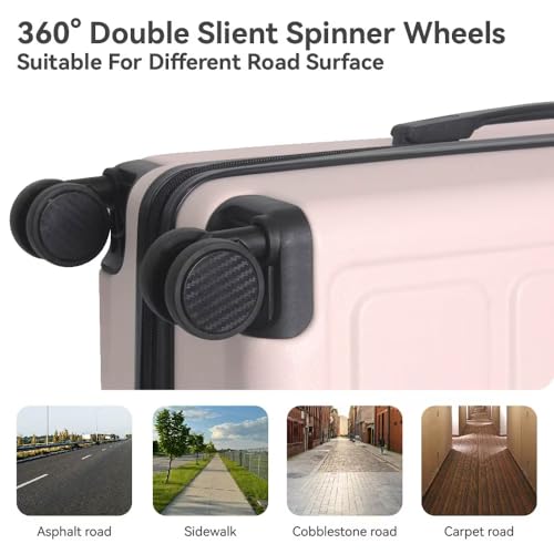 Luggage Sets ABS Hardshell 3pcs Luggage, Lightweight rugged Suitcase sets Spinner Wheels Suitcase 20''24''28'' (PINK)