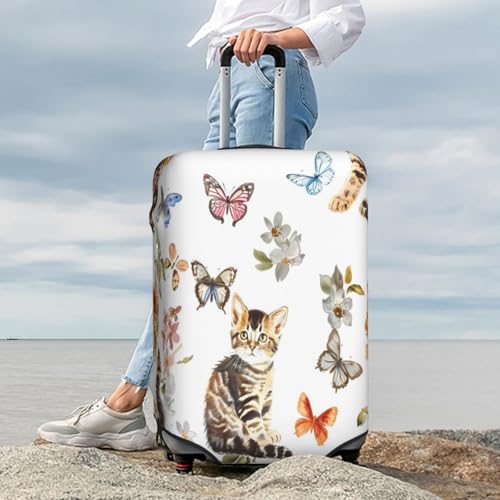 sizzling ! Cute Cat Butterfly Travel Luggage Cover Elastic Suitcase Covers Washable Anti Scratch Luggage Dust Covers Protector, Fits 18-21 inch Luggage, S