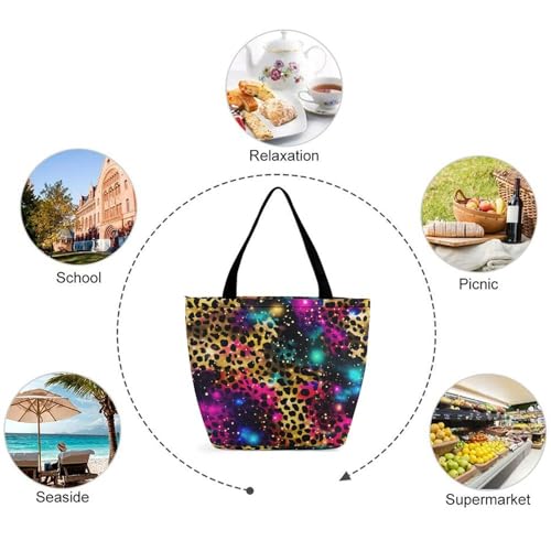 sizzling ! Gold Black Glitter Leopard Print Tote Bag for Women Reusable Shopping Bag Beach Bag for Shopping Gym Travel