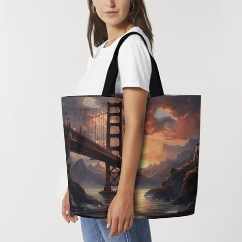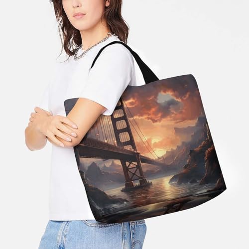 Bridge Large Grocery Tote Bag Women Fashion Handbag Duty Reusable Shoulder Bag for Travel Vacation Shopping Beach Bags 6