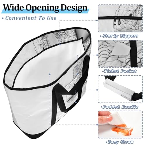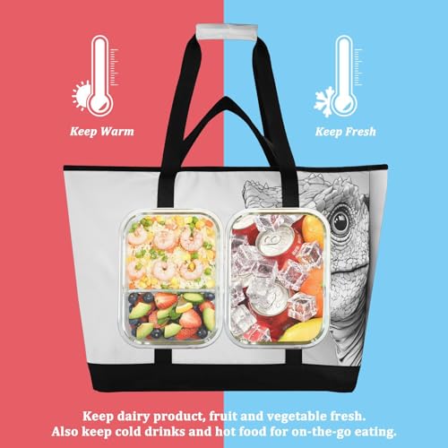 Dinosaur Black White Peeking Large Insulated Reusable Tote Bag for Grocery Shopping for Women Men, Cooler Bag with Zippered Top & Handles for Travel Beach Picnic