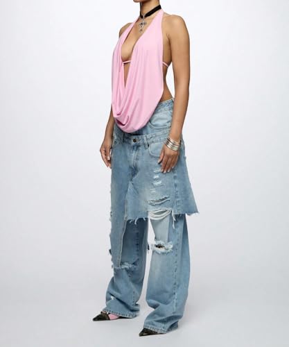 • Design Features: High-rise waist, exaggerated wide-leg silhouette, distressed ripped details, and edgy tear splicing for a bold streetwear look.