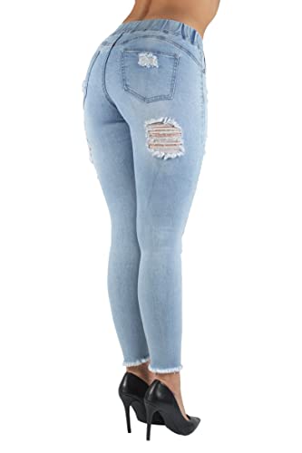 More information about Fashion2Love Women's Juniors/Plus Size Elastic Waist Ripped Distressed Denim Jogger (2030)