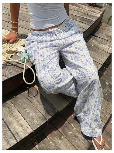 • Features: Graphic print, elastic waistband, tie waist, casual lounge pants for women