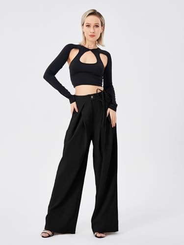 More information about Women's Casual High Waist Wide Leg Pleated Pants Tie Waist Trousers