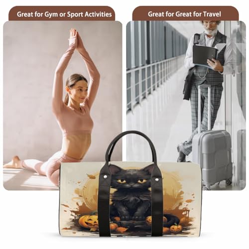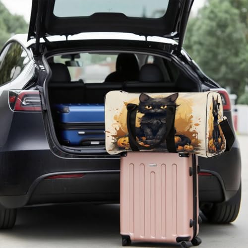 Halloween Black Cat Travel Duffel Bag for Women Men, Sport Tote Gym Bag Foldable Weekender Overnight Bag Waterproof Carry On Luggage Bag